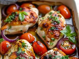 Just made this Balsamic Chicken Bake with Fresh Tomatoes, and it’s incredibly flavorful