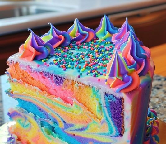 Rainbow Marble Cake with Homemade Buttercream Frosting