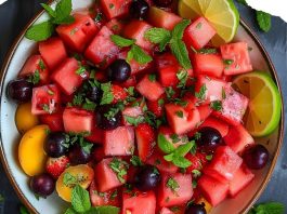 Crepe Rolls with Whipped Cream, Caramelized Peaches, and Pancetta