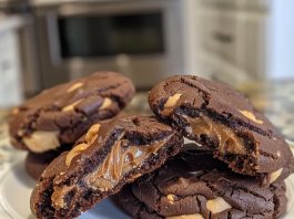 Decadent Peanut Butter Stuffed Double Chocolate Cookies
