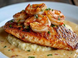 Red Snapper, Shrimp & Grits with a Cajun Cream Sauce