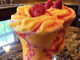 Tropical Mango Strawberry Swirled Slushies
